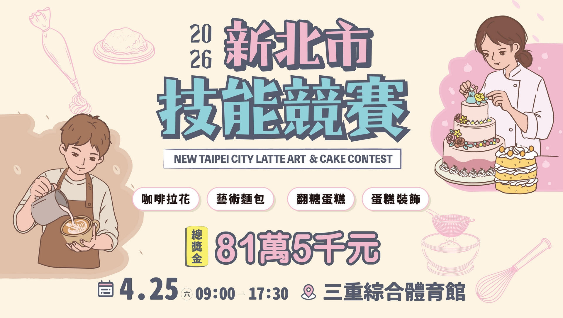 2025年,競賽總獎金提升至80萬元,2026年再創新高,總獎金達81萬5千元,並增設2名「最佳精神獎」,同時增加10組藝術麵包參賽名額,鼓勵更多選手勇於展現創意與技術實力,讓新北市技能競賽持續向上發展,累積更深厚的專業影響力。